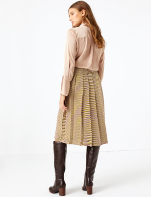 Wear with heels and a floral blouse to weddings and special occasions or with a white t-shirt for every day. Pleated midi skirt 25. Our online collection of womens midi skirts contains basic denim styles mid-length A-lines and bodycon knee-length skirts all in the latest prints and colors.