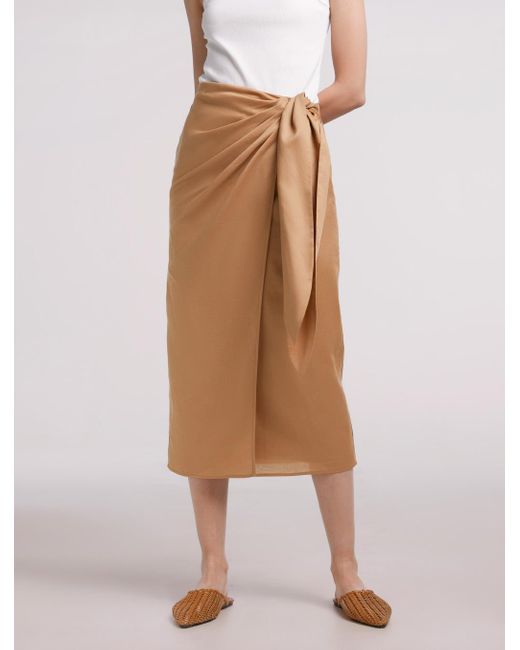 Pleated Wrap Midi Skirt