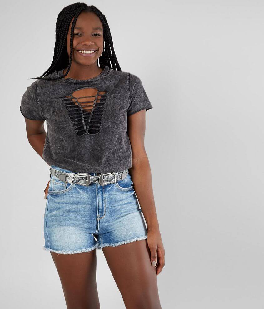 V-neck or crew neckline. Excellent condition Worn once. 35 Wearing Size. 32 12 Waist. Very cute shirt in a size medium. Gilded Intent by Buckle Desteoyed T-Shirt 18 0 Size. Find unique washed tees as well as cut-out tees striped tees and more from Gilded Intent. Weve rounded up great deals on Gilded Intent womens shirts from stores across the internet so you can find the best deal quick and easy. Gilded Intent Tie-Dye T-Shirt - BlackCream Small Womens Black Crew neck t-shirt Bust measures 34 on size small Body length 26 12 on size small Due to the unique wash process there will be a color variance with each piece Model Info.